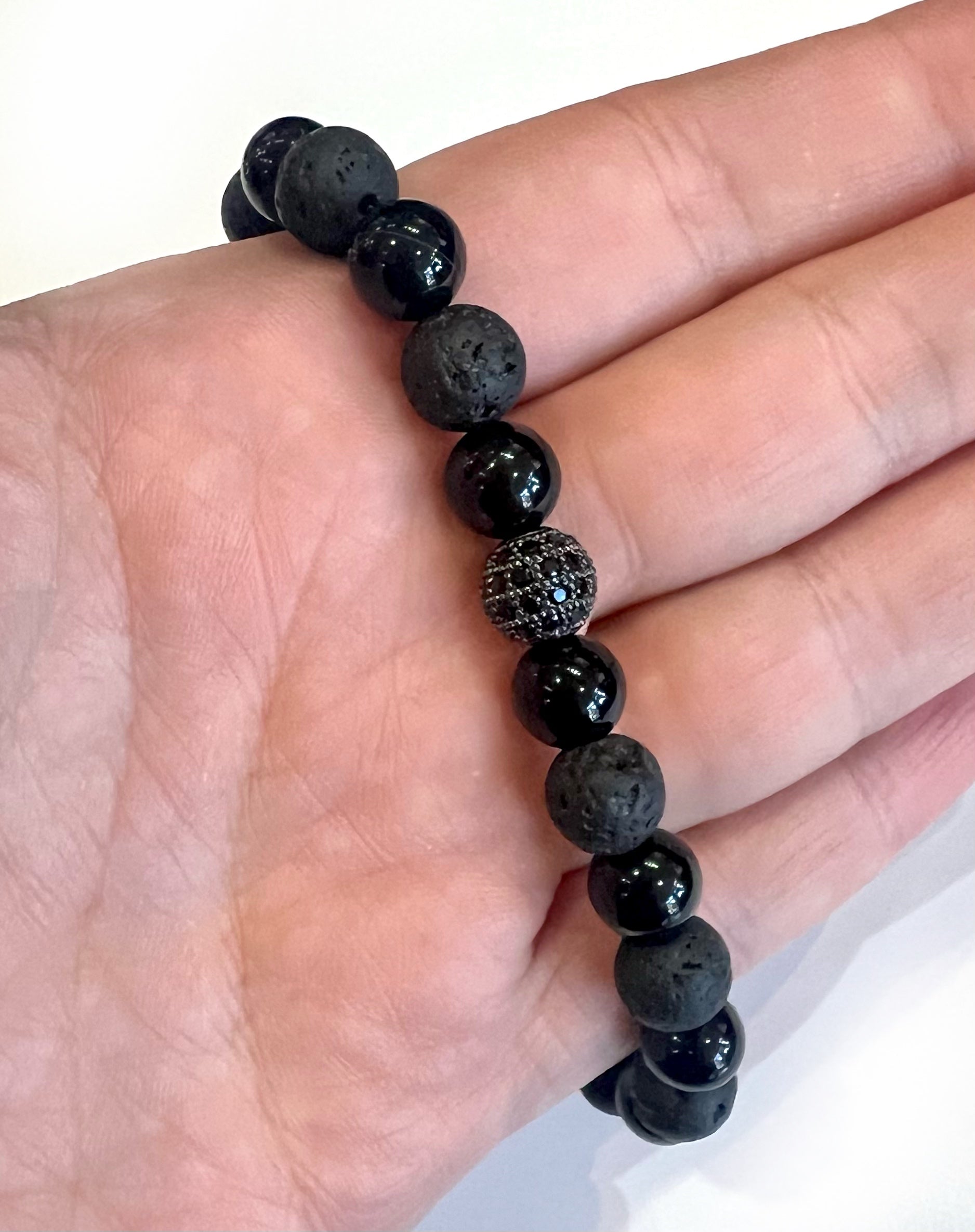 • 1 espaceur plaqué rhodium noir avec accents de zircone cubique noire.